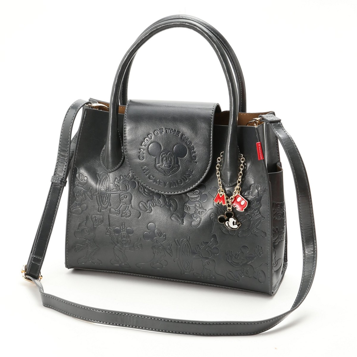 フェイクレザーにディズニーキャラクターの型押しを施した、お出かけが楽しくなるトートバッグ☆