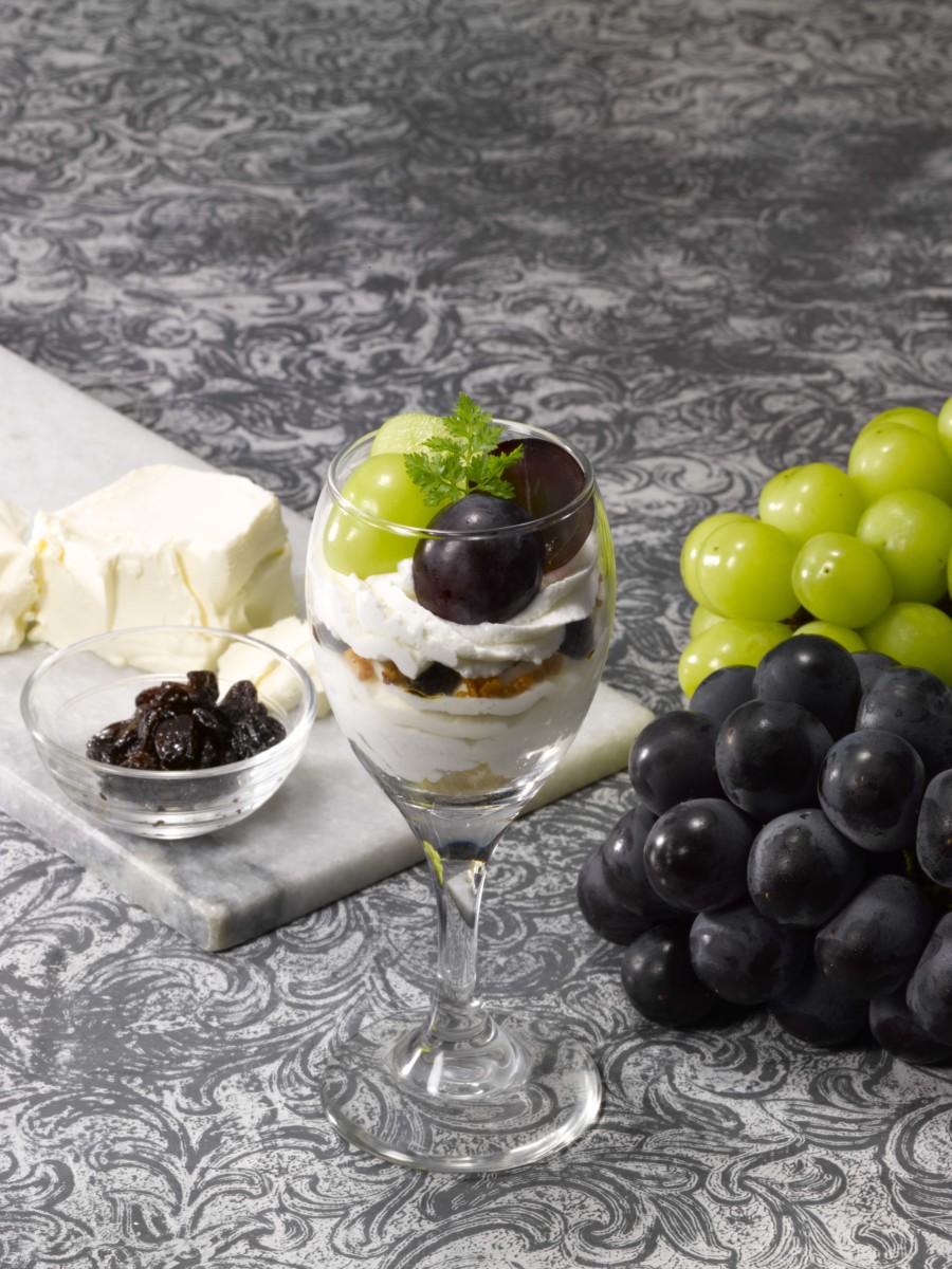葡萄のチーズケーキをイメージしたグラス入りデザートです。