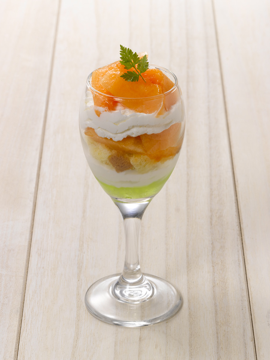 メロンショートケーキをイメージしたグラスデザートです。