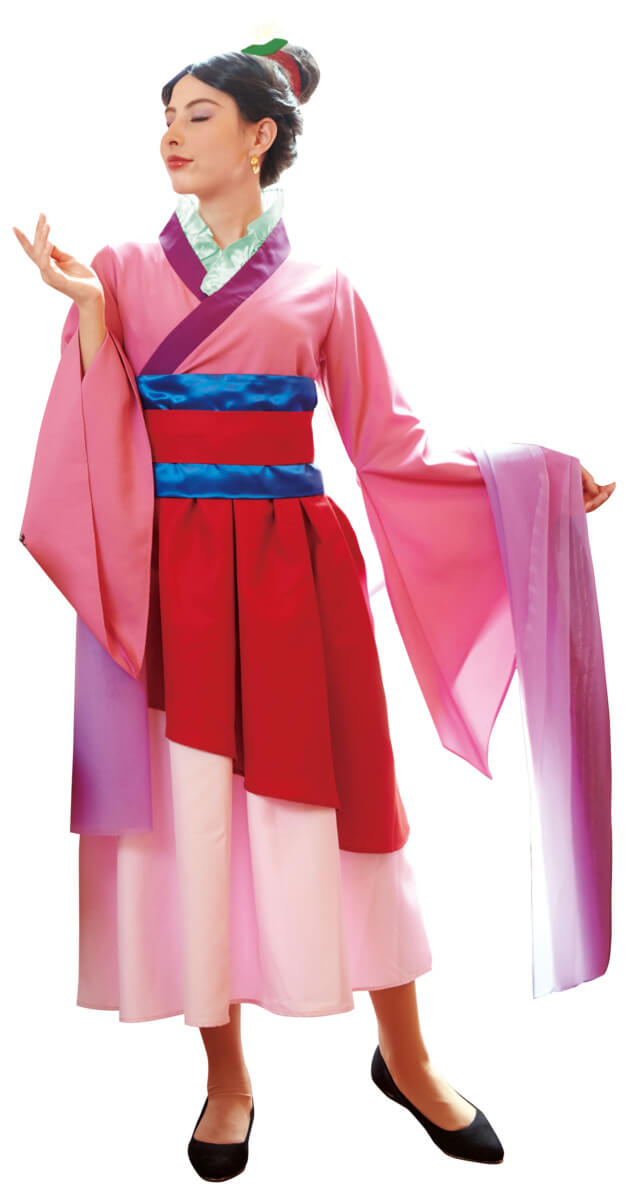 アジアンビューティーな「ムーラン」は、物語の序盤、父の代わりに軍隊に入る前の衣装デザインで登場!