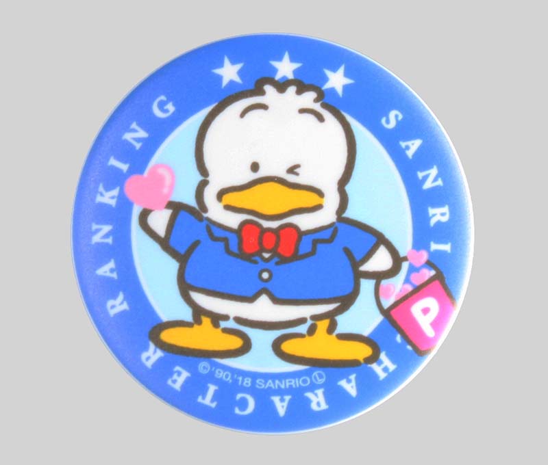 応援しているキャラクターのデザインのポリカバッジが付いてきて、サンリオキャラクター大賞への1票の投票になります。