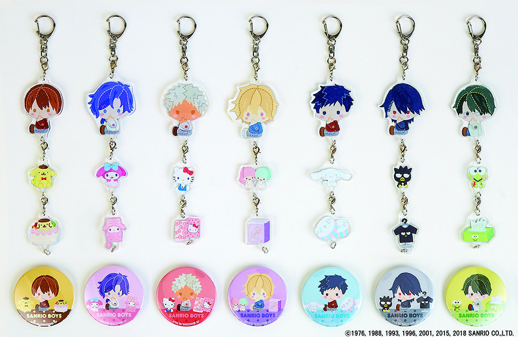 サンリオ男子7人のアクリルキーホルダーセットと、トレーディング缶バッジが登場です♪