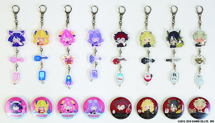 「プラズマジカ」の4人と「シンガンクリムゾンズ」の4人、合わせて8人がアクリルキーホルダーとトレーディング缶バッジになりました!