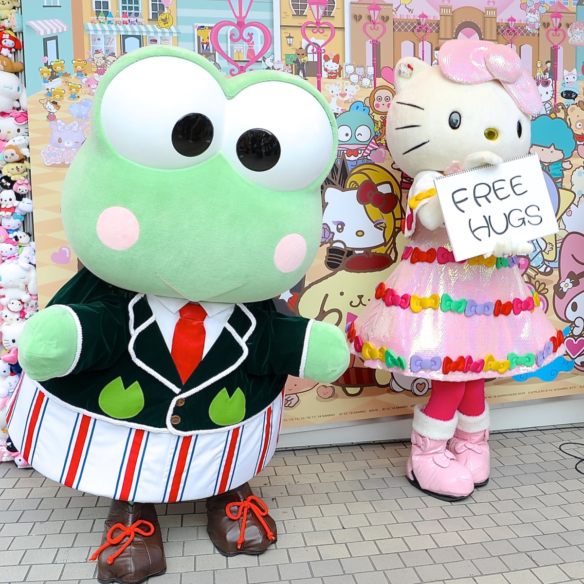 ハローキティやけろけろけろっぴが登場し、フリーハグ会がゲリラ開催されました!