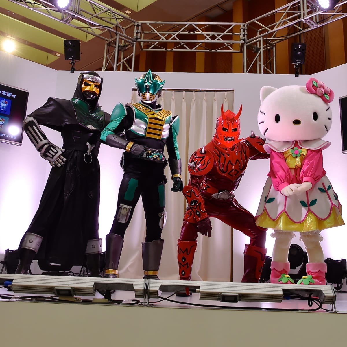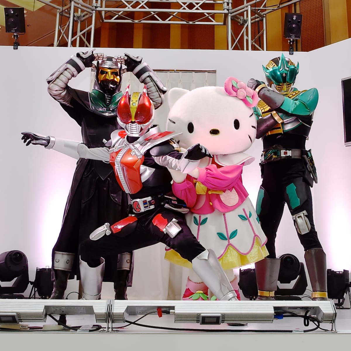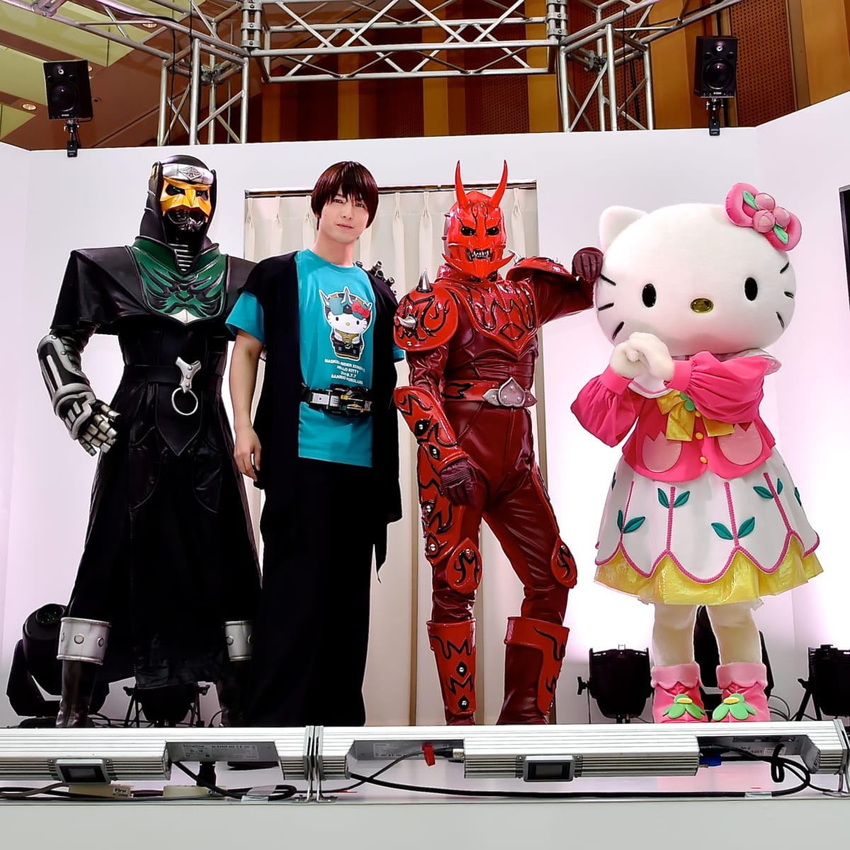 発表会には中村優一さん、ゼロノスアルタイル、モモタロス、デネブ、電王ソードフォームに加え、ハローキティも登場☆