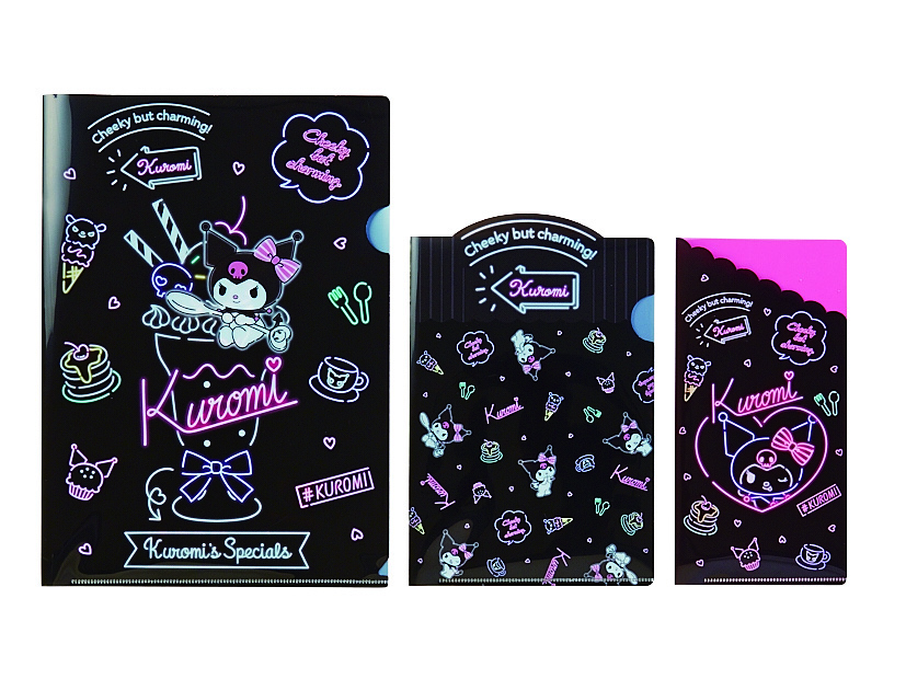 今回発売されるアイテムには、ネオン管をモチーフにカラフルな色使いのデザインで、クロミのパフェやカップケーキなどかわいいスイーツモチーフも登場。