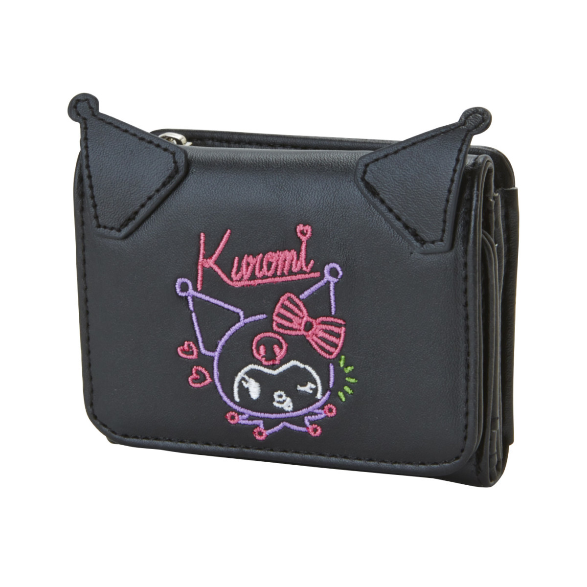 本体部にペロリと舌を出す「クロミ」がチャーミングに刺繍されたミニウォレット。