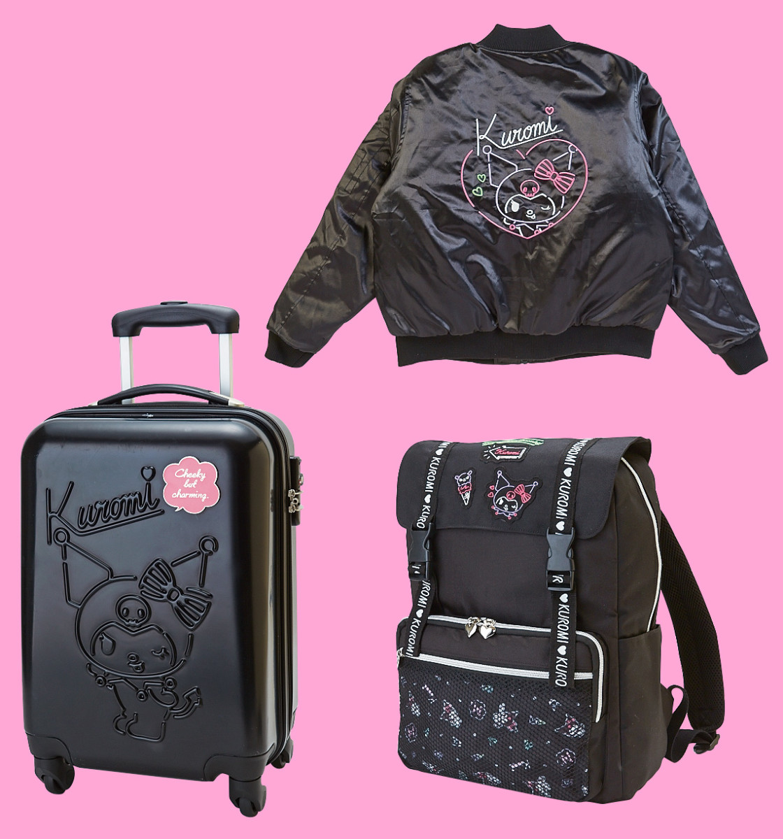 また、大人っぽいデザインで仕上げられた「クロミ」とロゴを型押しで表現したキャリーケースなど全15アイテムがラインアップされています☆