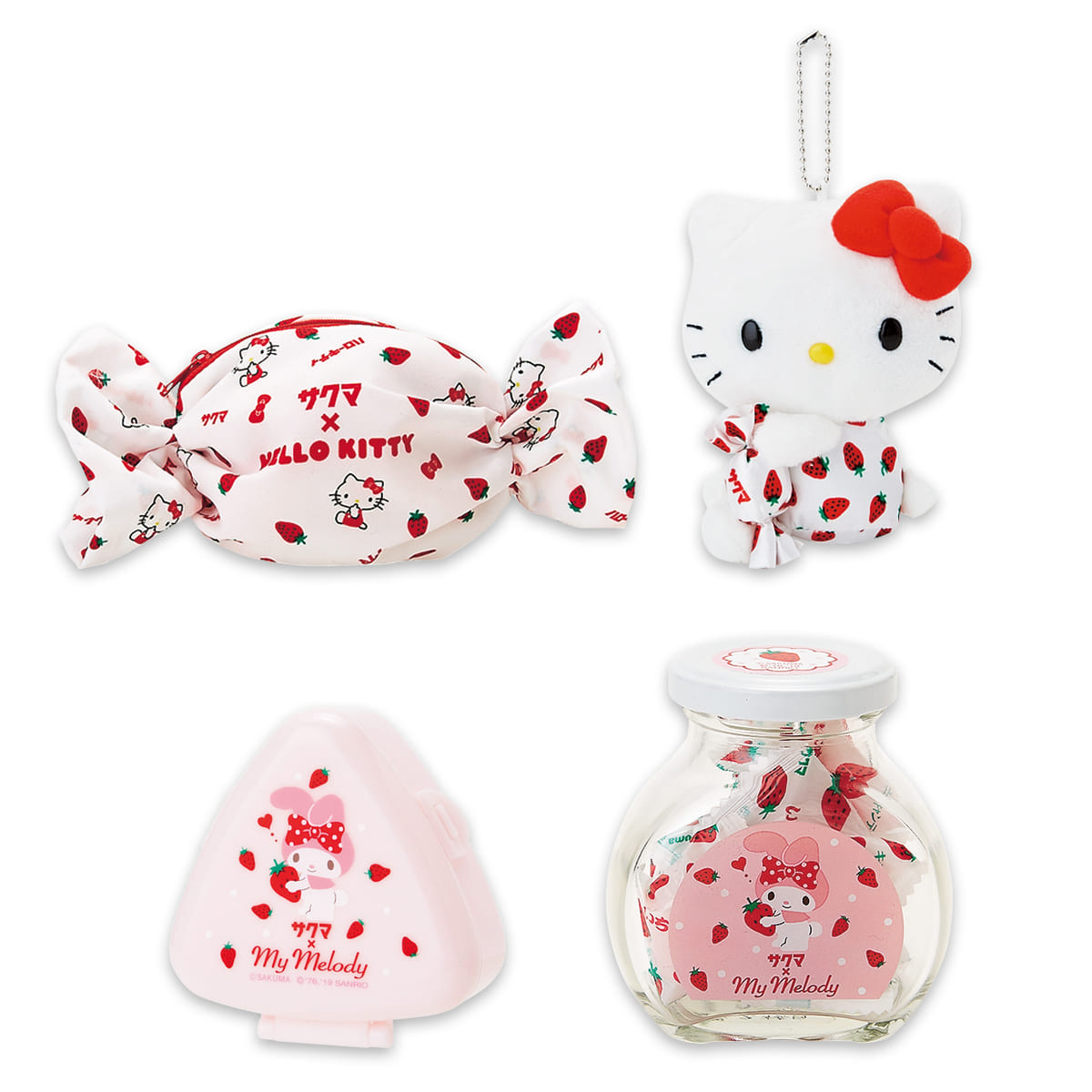 サクマ製菓のいちごみるくと、「ハローキティ」、「マイメロディ」がコラボしたシリーズです。
