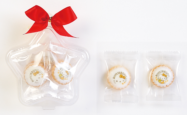 「ハローキティ」のメッセージ入りビスケット。