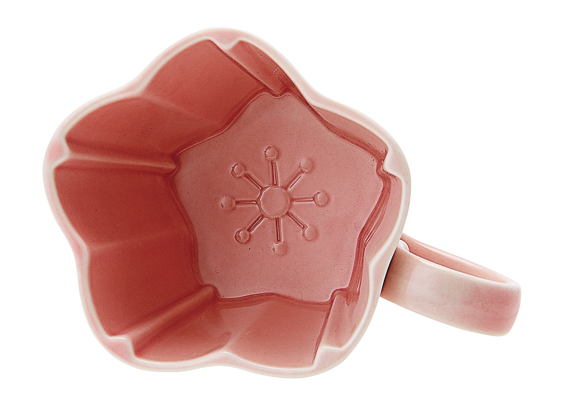 ピンクの桜型マグカップは、飲み物を飲み干すと底に可憐な花弁が。