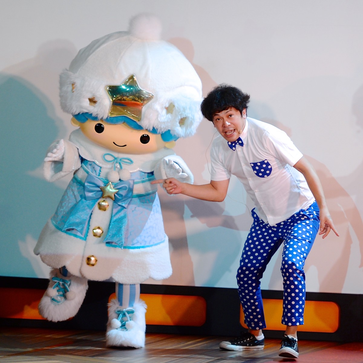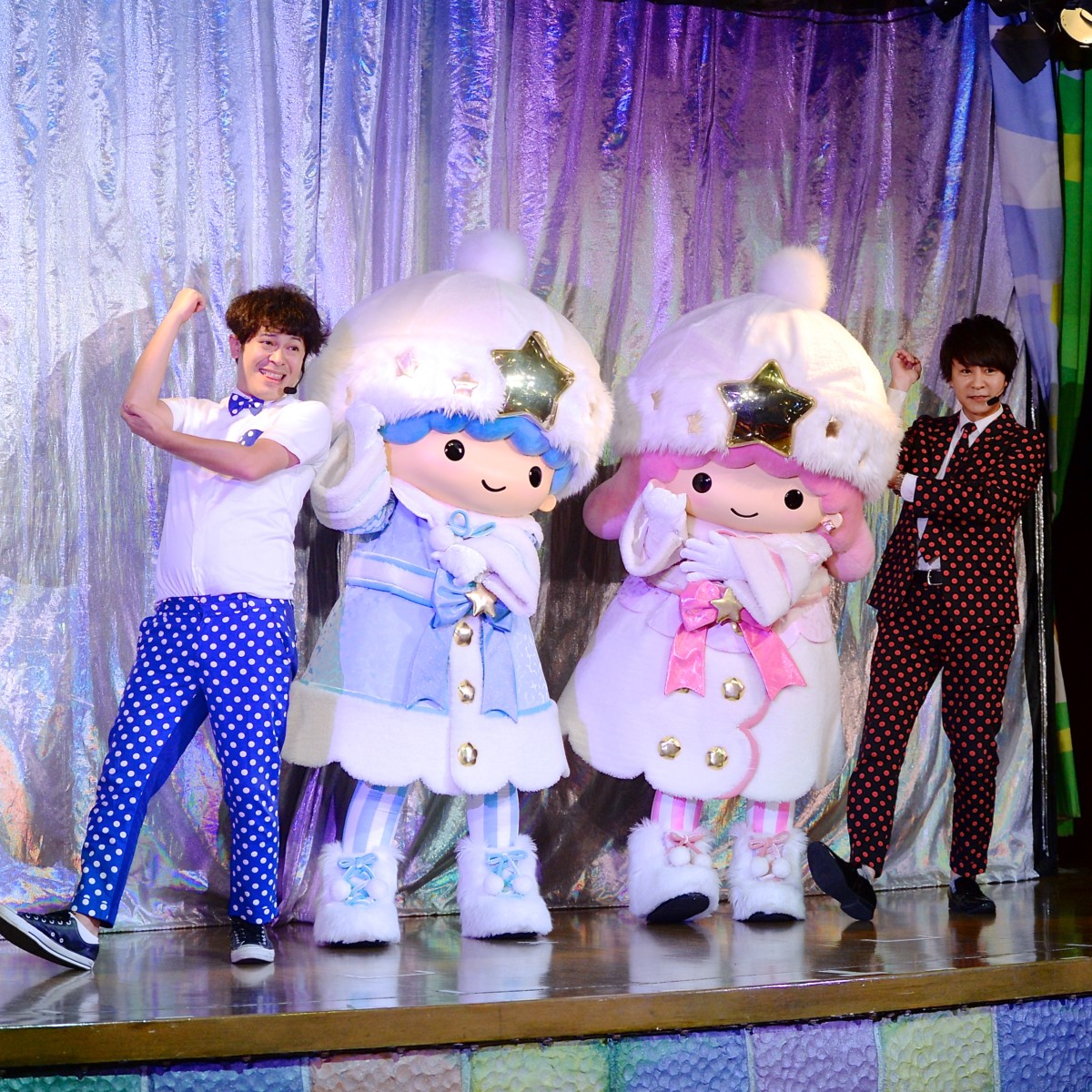 お笑いコンビ「流れ星」とリトルツインスターズ(キキ&ララ)とのコラボレーション。