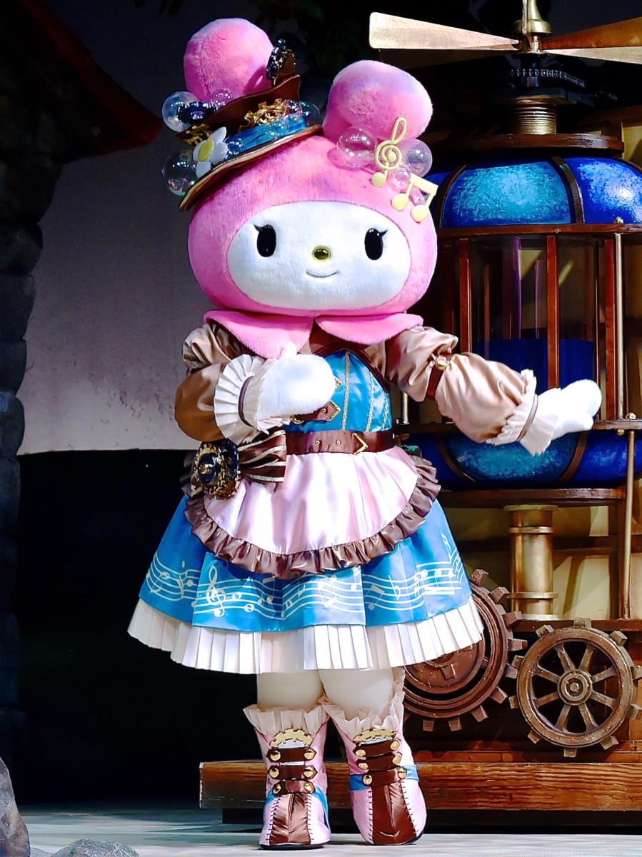 まず最初に登場したのは、スチームパンク風の少しレトロなコスチュームに身を包んだマイメロディ。