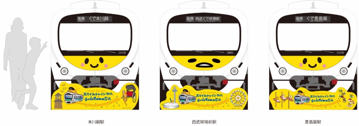 黄色い‟ぐでたまスマイルトレイン”が運行!サンリオ×西武鉄道「スマイルトレイ ン10th×ぐでたま5th記念キャンペーン ~レールの上にも10年、白身の上にも5年~」