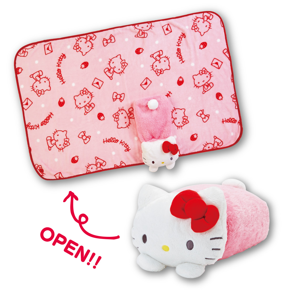 寝そべったキャラクターの中にブランケットを収められる、クッションブランケット。