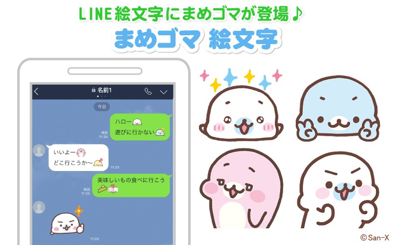 LINEの新サービス「LINE絵文字」に、サンエックスの人気キャラクター「まめゴマ」が登場しました。