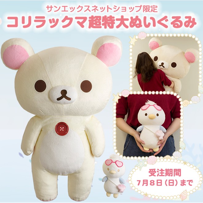 「コリラックマ超特大ぬいぐるみ」は、サンエックスネットショップにて2018年7月8日(日)まで期間限定発売中です。