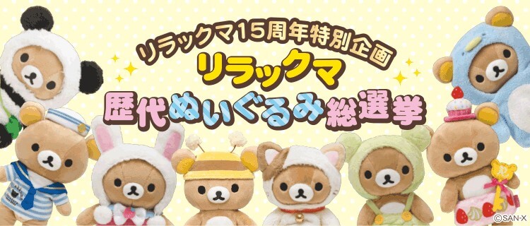 サンエックスネットショップにて、「リラックマ歴代ぬいぐるみ総選挙」を開催中!