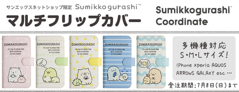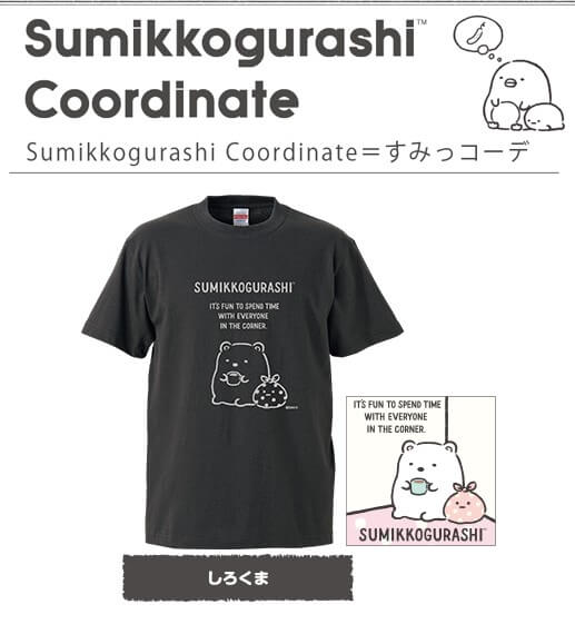 「すみっコーデ」のTシャツとマルチフリップカバーは、サンエックスネットショップにて好評発売中です。