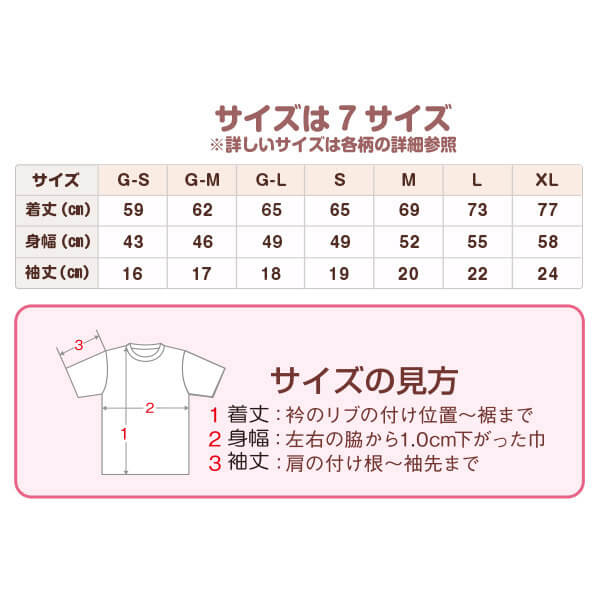 サイズ:7サイズ(G-S~XL)