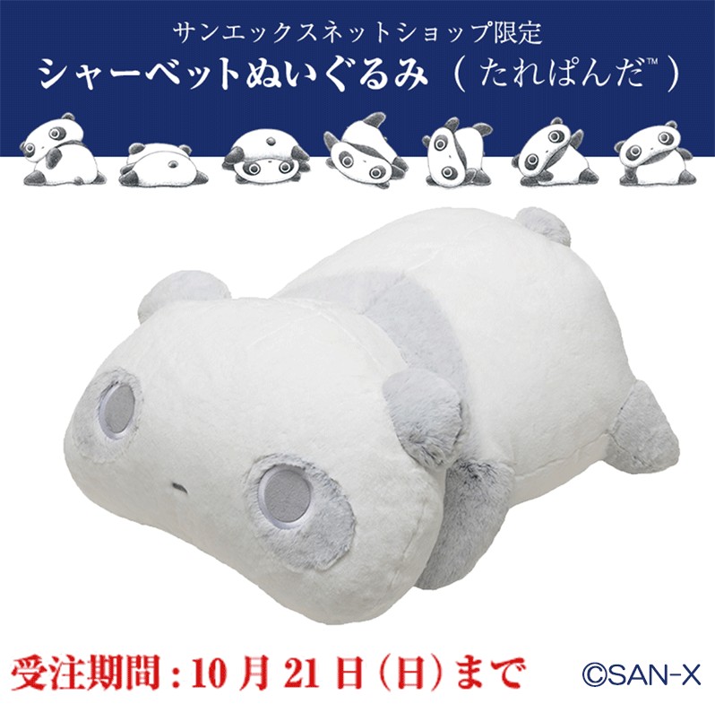 「たれぱんだシャーベットぬいぐるみ」は、サンエックスネットショップ限定にて、2018年10月21日(日)まで注文受付中です。