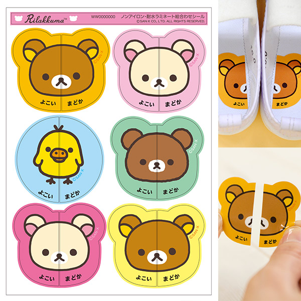 リラックマ・すみっコぐらし「お名前シール(ノンアイロン耐水ラミネート絵合わせ)」