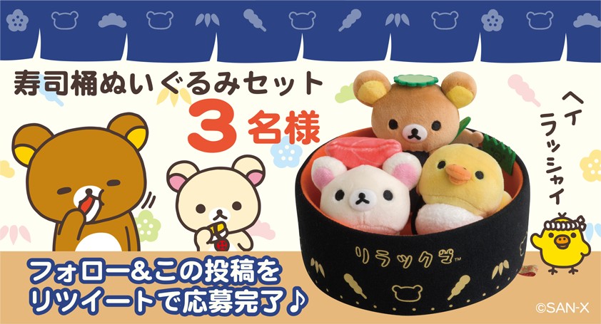 リラックマの「寿司桶ぬいぐるみセット」が当たる、Twitterフォロー&リツイートキャンペーン!
