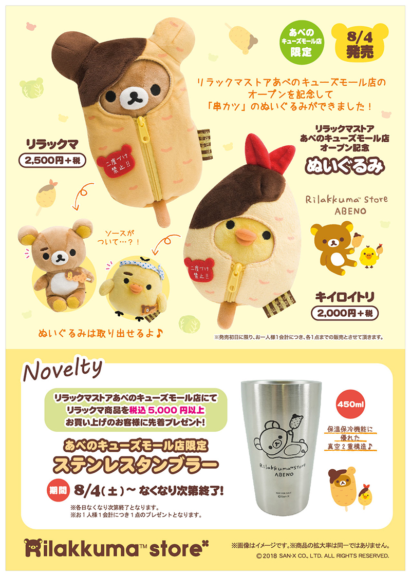 リラックマストアあべのキューズモール店にて、オープン記念の限定ぬいぐるみが2018年8月4日(土)発売です。