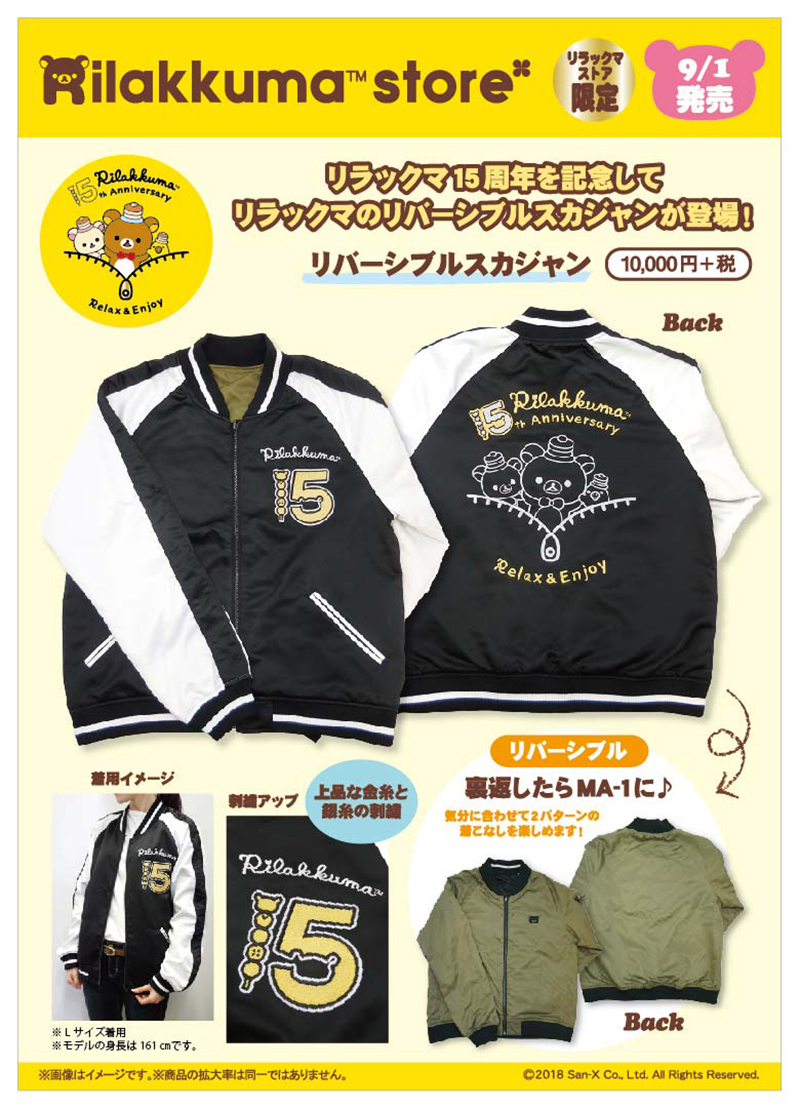 リラックマストア限定で、リラックマの「リバーシブルスカジャン」が2018年9月1日(土)に発売されます。