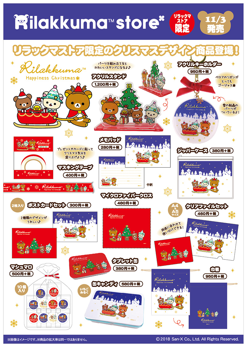 2018年はハピネスクリスマス☆な、リラックマたちのクリスマスアイテム。
