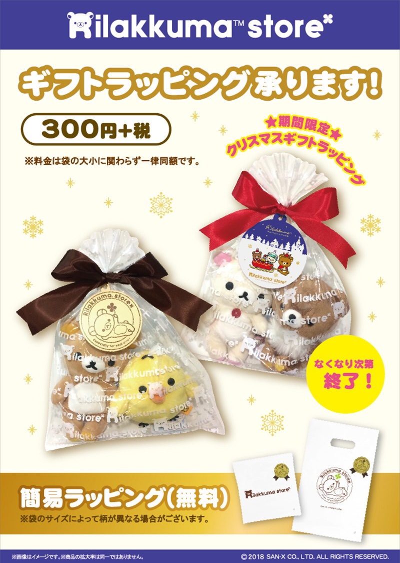 クリスマス仕様のギフトラッピング(有料)は、リラックマストアのみでの取り扱いです。