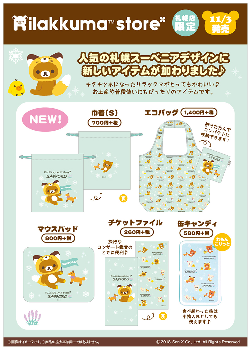 キタキツネリラックマ!リラックマストア札幌店「札幌スーベニアデザイン商品 」
