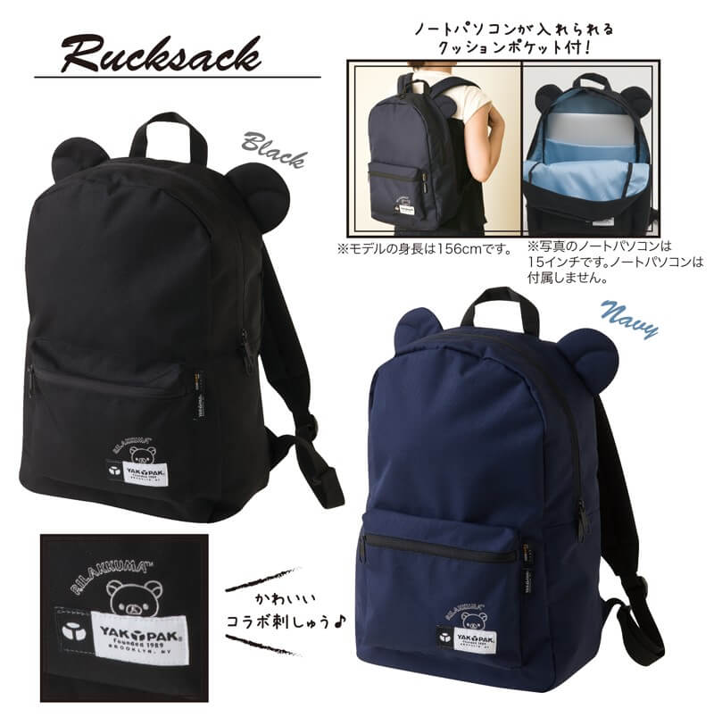 ブラックとネイビーの2色から選べる、リラ耳付きリュック。