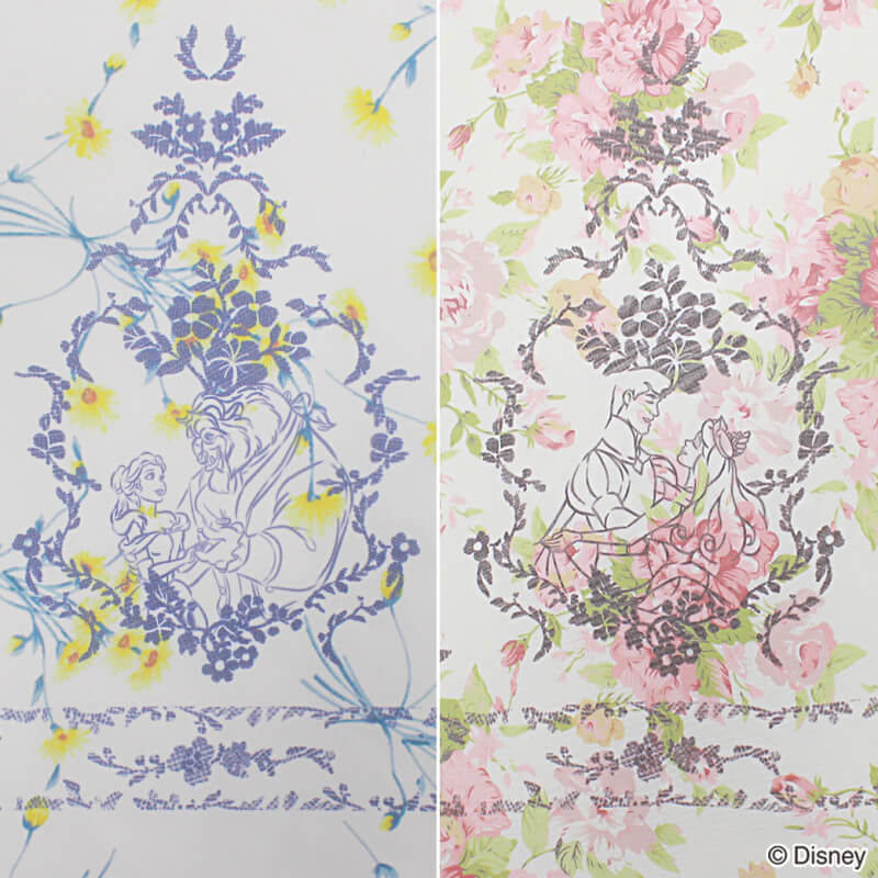 裾には手を取り合う「ベル」と「野獣」をプリントしています。