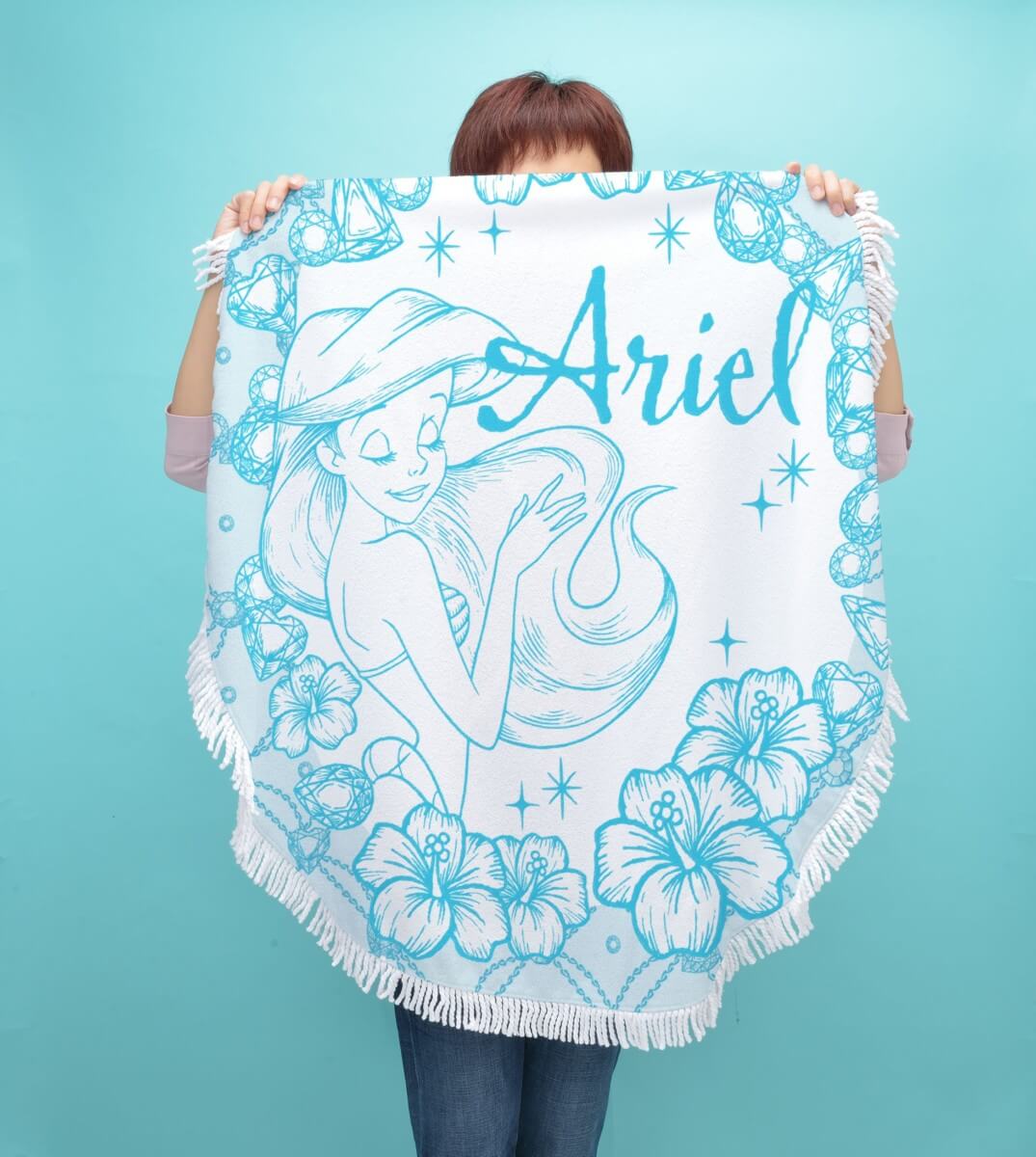 人気のラウンド型のタオルが、『リトル・マーメイド』のディズニープリンセス「アリエル」デザインで登場☆