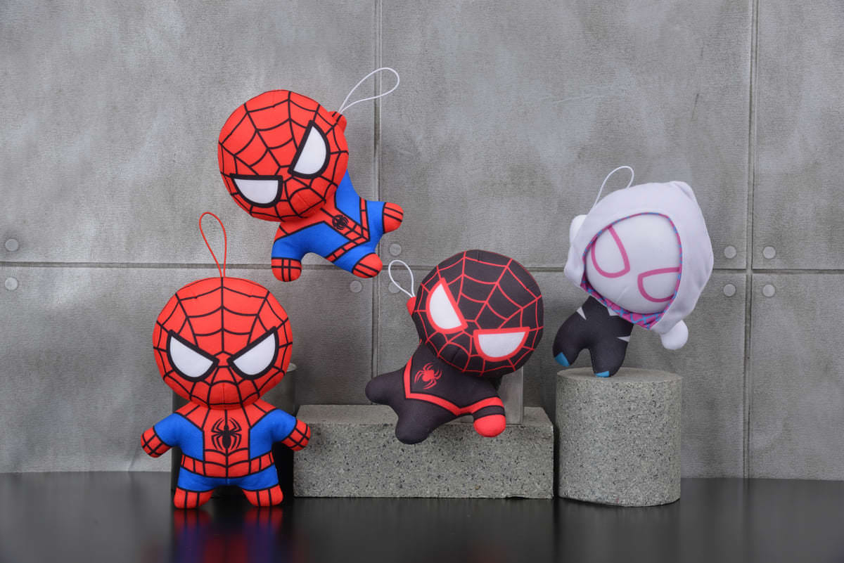 主人公の「マイルス・モラレス」や「スパイダーマン」たちが全長約17cmのぬいぐるみになってラインナップされます。