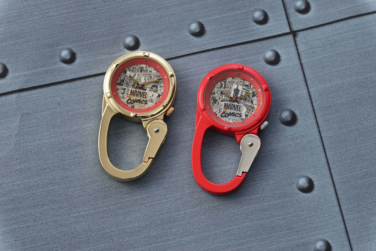 文字盤部分に「MARVELコミックス」のイラストが配置された「MARVEL COMICS プレミアムカラビナウォッチ」