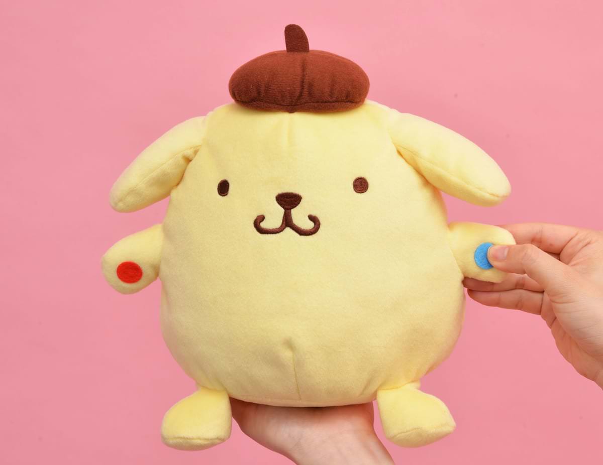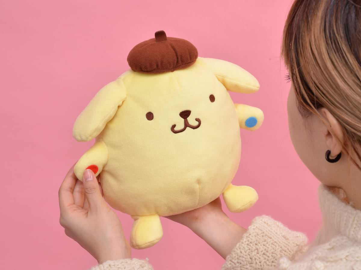音声を録音再生できる「ポムポムプリン」の楽しいぬいぐるみです。