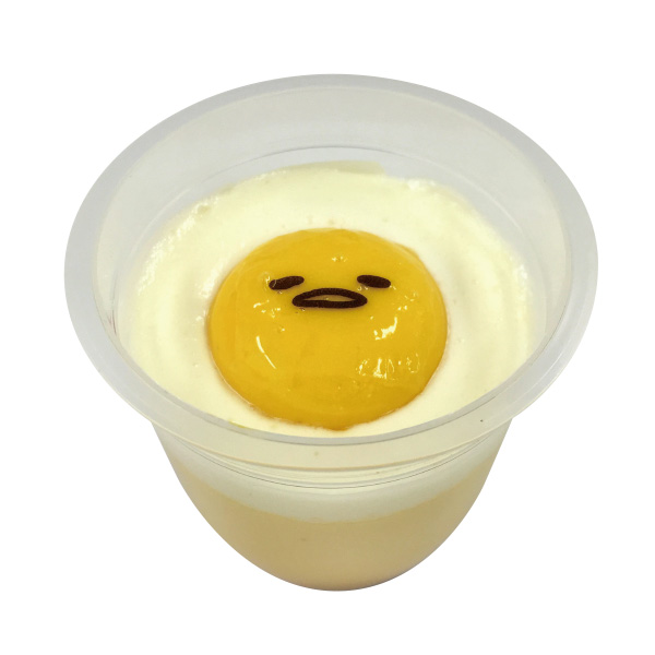 なめらかなプリンの上には、たっぷりのクリームとやる気のなさそうなぐでたまがのっています。