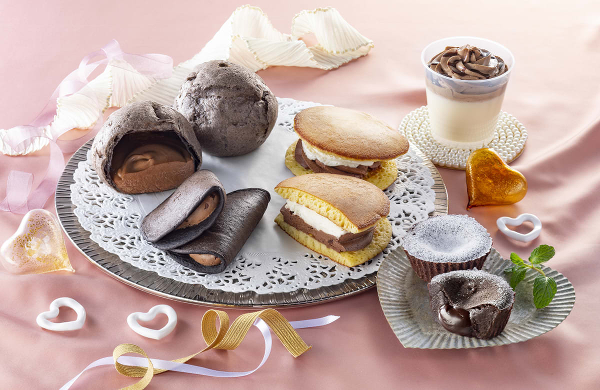 もちもちの食感となるよう独自配合で仕立てたどら焼き生地でチョコホイップクリームを包んだ「うす~い和もっち巻き ちょこほいっぷ」や、チョコの濃厚な味わいが特長の「温めても美味しいフォンダンショコラ」など、チョコをたっぷり楽しめる商品が続々販売されます。