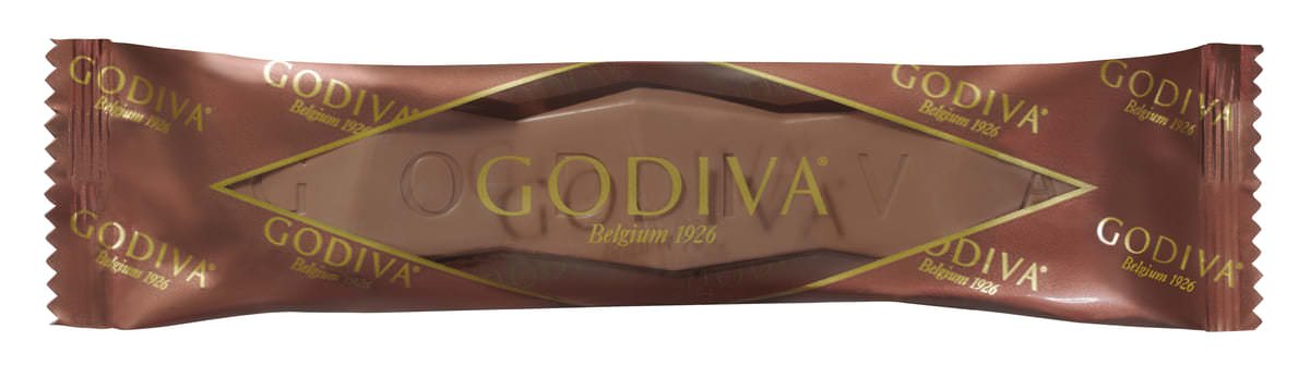 ゴディバの上質な味わいと、スタイリッシュでありながら手軽に折って食べられる商品コンセプトを、GODIVAのスペル一文字一文字にデザインされたカーブのカットラインでモダンにデザインしています。
