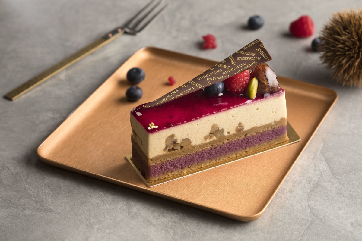 カシスクリームとマロンを練りこんだ生地、栗をかけらをふんだんに使ったマロンムースが層になった大人な一品。