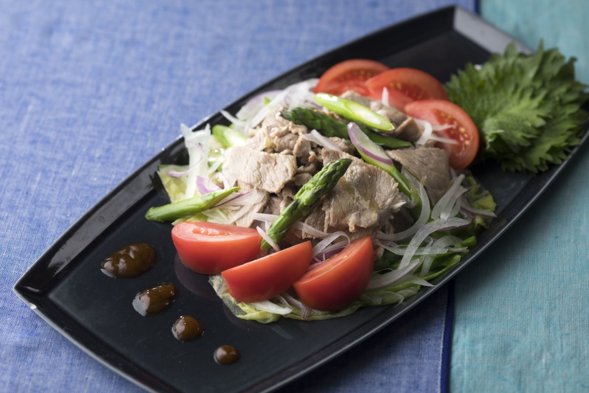ボイルドポークとアスパラガスのサラダ 青じそドレッシング