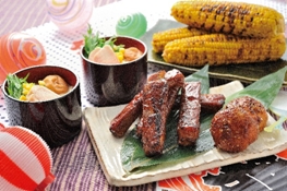 地元、千葉の食材を使用したシェフ特製屋台では、定番のたこ焼きや茹でたての枝豆から、下総醤油風味の焼きとうもろこしや千葉産ポークと野菜のお好み焼き、さらにはテリヤキBBQスタイルのスペアリブなど、様々なメニューを味わうことができます。