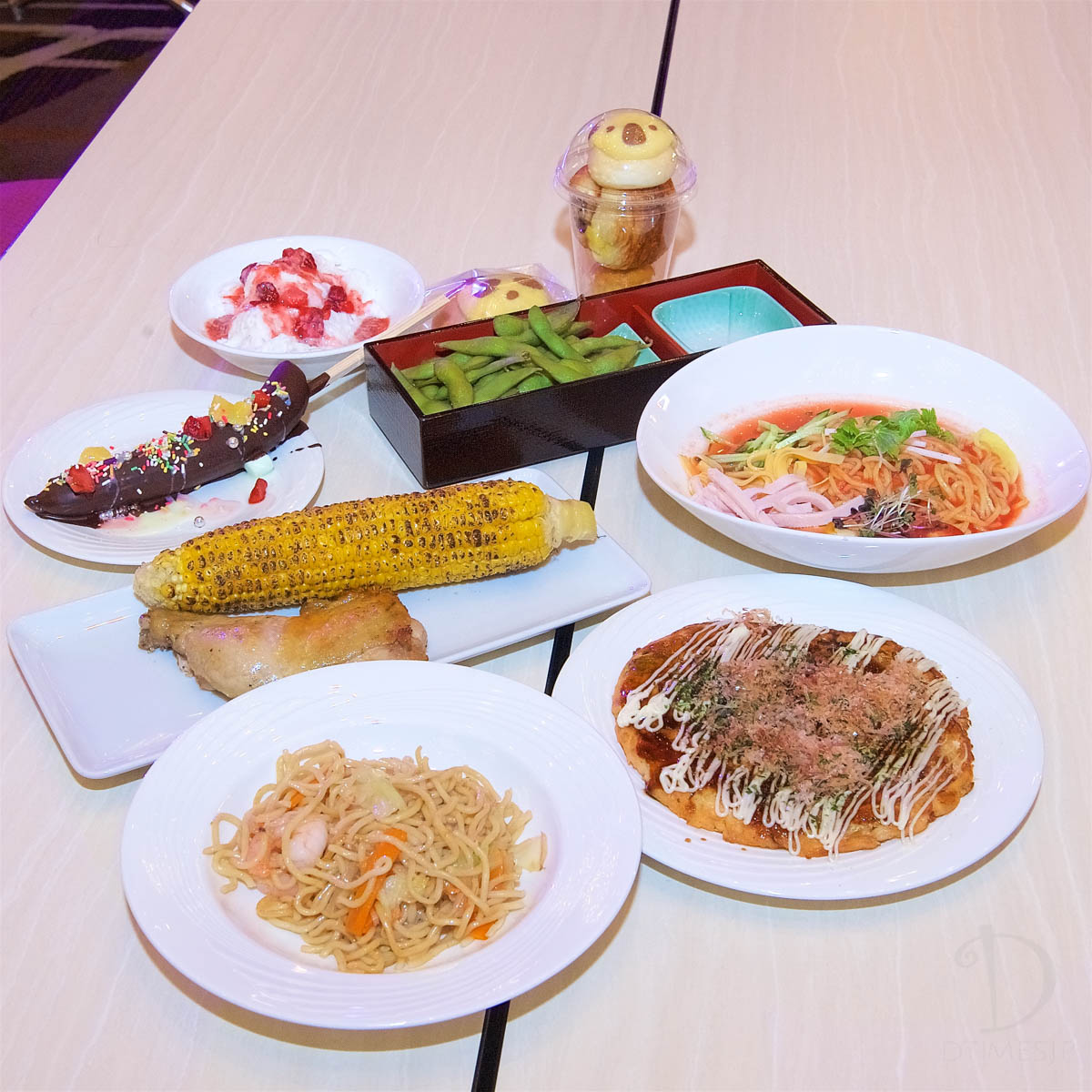 他にも、たこ焼き、フライドポテト、茹でたて枝豆、肉巻きおにぎり、焼き鳥、テリヤキBBQスペアリブ、蒸鶏のWスープ塩ラーメン、ソフトアイスクリーム等も提供されています。