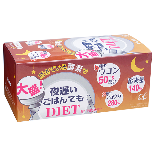 「夜遅いごはんでも」は、活きている酵素「新谷酵素」と、スッキリに嬉しい成分を配合した健康と美容に嬉しいダイエット応援サポートサプリメント。
