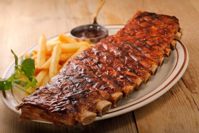 ビッグサイズのポークリブをBBQソースで香ばしく仕上げた一品。