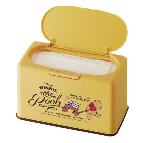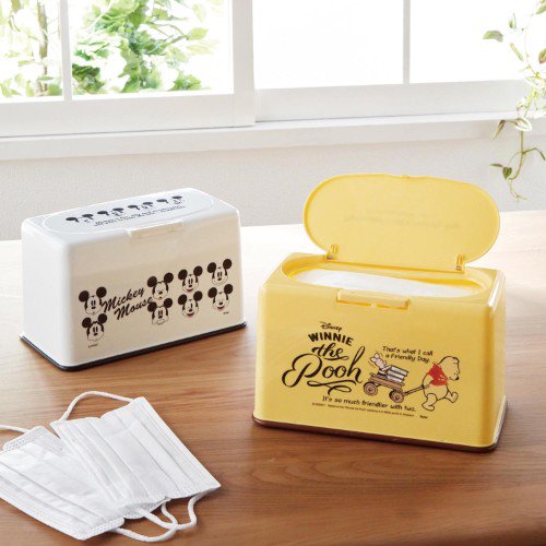 イメージカラーのイエローを基調とした「くまのプーさん」デザインのマスク収納ボックス。