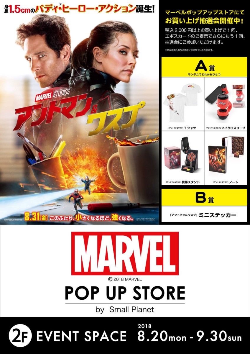 イベントスペースで「アントマン&ワスプ」グッズ(非売品)が景品で当たる抽選会が開催!
