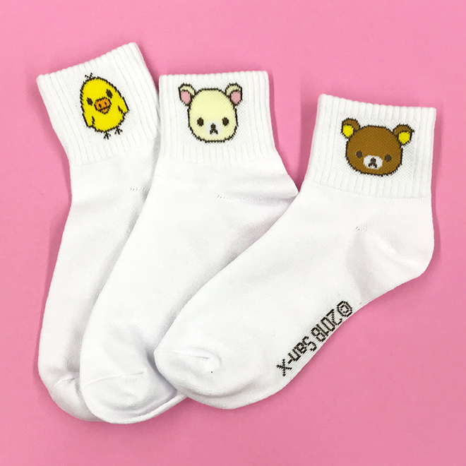 リラックマたちのシンプルでかわいいクルーソックス!